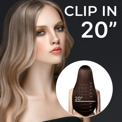 Looking to get longer, fuller hair in an instant? Use our temporary, quick and easy self installation clip-in hair extensions. Made from supreme quality 100% remy human hair, they add volume, length and layers to your natural hair giving you the hair you desire. Customize your look by choosing the hair length, hair quality grade and color of your liking to achieve the look of your dreams! These 20”/ 20 inch clip in hair extension pieces are available in different hair blends of grades 3A,4A, and 6A. They come in a pack of 8 pieces; 4 pieces with 3 clips, and 4 single clips. Each pack is 100 grams, for a lightweight look and feel. Get your hairstyle done in seconds with our clip-in hair extensions. Just clip and go!