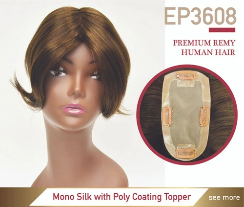 EP3608 Clip-on Mono Silk Remy Human Hair Topper For Natural Parting Line