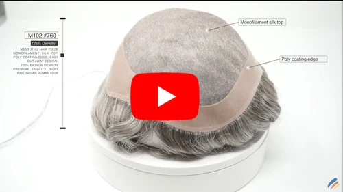 The M102 is a durable yet natural-looking hair system available at Superhairpieces. With poly skin coating on the sides, this not only provides plenty of durability, but makes the M102 easy to install, clean and remove. The monofilament silk provides comfortable wearing while the 1/8″ double folded lace front gives the wearer a more natural-looking front hairline. With a heavy density of 135%, this unit is ideal for those looking to get the best of both worlds in terms of durability and a realistic look!