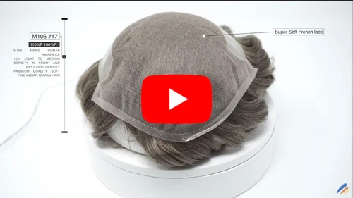 The M106 men’s toupee uses super soft French lace material to provide a very natural and realistic look throughout the unit. It comes with 1″ of poly painting across the back for easy attachment, maintenance and removal. It also has an 100% light to medium hair density with an extra 10% hair density in the front allowing for various styling options. Overall, it’s one of the most popular options available at Superhairpieces when it comes to natural-looking hair systems.