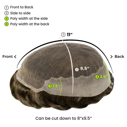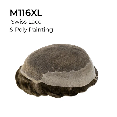 Mens Toupee M116XL Swiss Lace Poly Back Men’s Hairpiece Extra Large Size