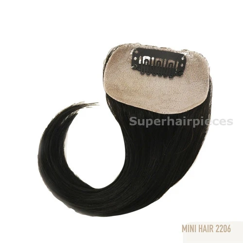 Do you just need a hairpiece for a specific area of thinning hair or a bald spot? Look no further than our Mini Hair 2206 add on hairpiece! This is an easy-to-attach monofilament silk hairpiece that is very comfortable to wear. It uses premium Chinese Remy hair with a hair density of 130% to cover any unwanted spots. It is also constructed with a poly coated base and has a clip on the center which allows for easy installation and makes it very long lasting.