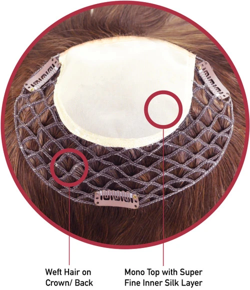 The Magic On 7608 is an ideal choice for a natural-looking women’s hair topper. It uses a monofilament silk front for a comfortable wearing experience with the front edges sealed by ultra sonic technology to create an invisible hairline integration. The rest of the unit uses a fish net which allows the wearer to integrate their own hair into the hairpiece for an even more natural look. It also comes with a stretchable back which makes it flexible and breathable while the spaced out linked machine wefts on the back add to the top piece’s durability. Comes with three clips allowing for easy attachment and daily wear.