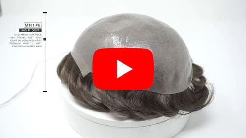 The M101 men’s toupee is one of the most popular Thin Skin Hairpieces for men available at Superhairpieces. Its base thickness of 8 mils is the most durable thin-skin hair system we offer. This means it can last several months if maintained well while being a decently natural-looking unit. It comes with 100% light to medium hair density with an extra 10% in the front while the hair is single split knotted, providing movement and a realistic look. The ½-inch front is made with v-loop ventilation for a natural-looking hairline, so it is recommended to be extra gentle with this area as v-loop strands shed easily.