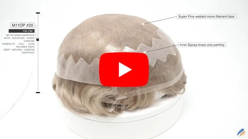 If you like the natural look of the M110 super fine welded lace hair system, but would like easier installation and cleaning, the M110P is for you. This hairpiece comes with zigzag-shaped poly skin painting across the front which allows for easier maintenance with either tape or glue. Additionally, 1/2″ of the lace front is filled with hair while there are invisible knots throughout to provide an even more natural look for the wearer.
