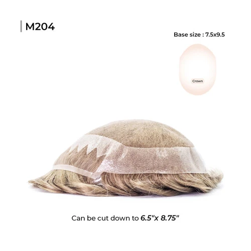 The M204 is a super soft, natural-looking French lace hair system by zigzag shape. It comes with 1.25″ of poly painting on the sides that expands to 1.5″ at the back, allowing for easy installation and maintenance. It can also hold 120% hair density and lasts a couple of months due to its short to medium durability.